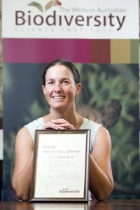 Bronte Van Helden from The University of Western Australia was awarded the prestigious PhD top up scholarship from The Western Australian Biodiversity Science Institute.